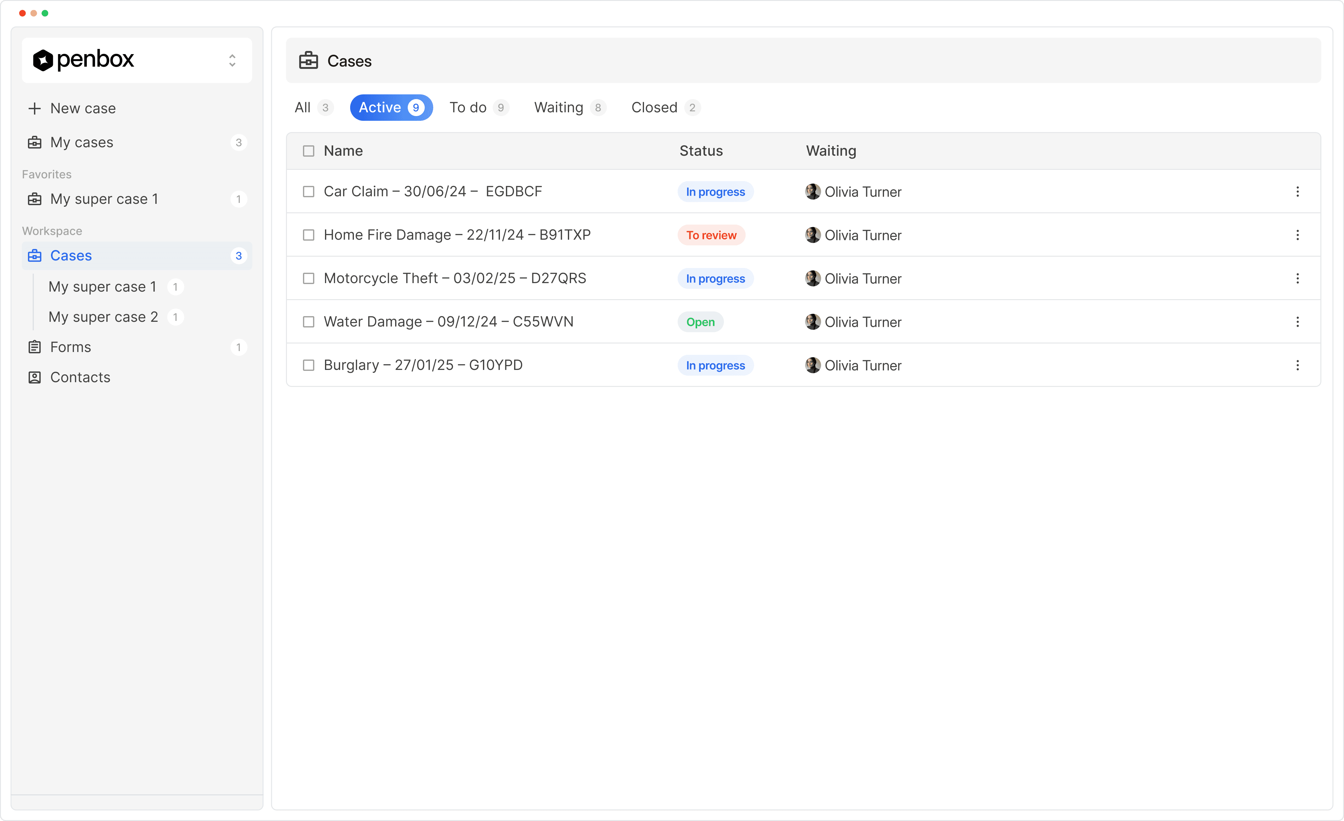 Penbox structures document-heavy case work into governed workflows that keep moving. Information is collected, next steps are guided, and every interaction stays traceable.